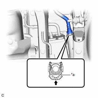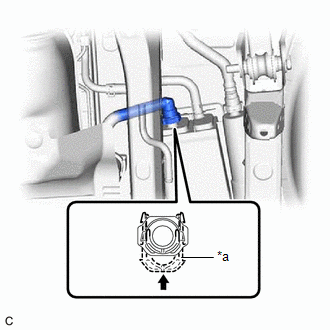 (c) Push in the air line tube to the pipe (leak detection pump sub-assembly) until the air line tube makes a "click" sound.