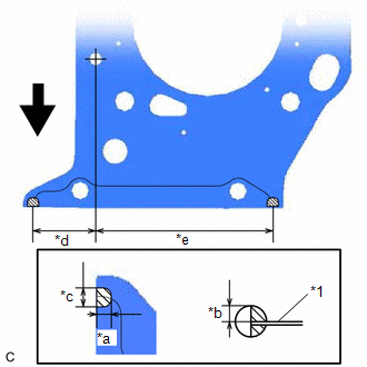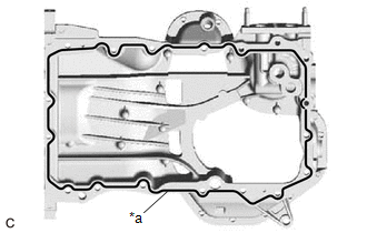| (b) Apply seal packing in a continuous line as shown in the illustration. Seal Packing: Toyota Genuine Seal Packing Black, Three Bond 1207B or equivalent Seal Packing Diameter: 3.0 to 4.0 mm (0.118 to 0.157 in.) NOTICE: