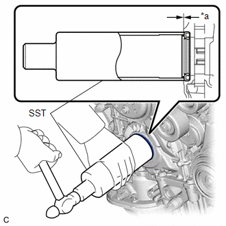 | (a) Apply MP grease to the lip of a new timing chain case oil seal. | | | *a | Oil Seal Protrusion Height | | |