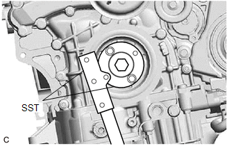 | (a) Using SST, hold the crankshaft pulley. SST: 09213-70011 09213-70020 SST: 09330-00021 |
