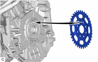| (a) Install the No. 1 crankshaft position sensor plate. HINT: Align the pin of the No. 1 crankshaft position sensor plate with the pin hole of the crankshaft. |
