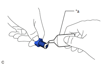 | (d) Apply adhesive to 2 or 3 threads at the end of each of the 8 bolts. Adhesive: Toyota Genuine Adhesive 1324, Three Bond 1324 or equivalent |