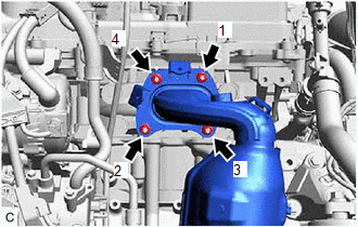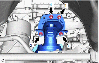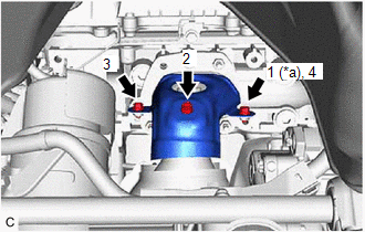 | (c) Using a 12 mm deep socket wrench, tighten the 4 nuts in the order shown in the illustration. Torque: 21 N·m {214 kgf·cm, 15 ft·lbf} |