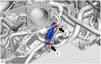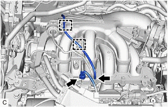 | (i) Engage the 2 clamps to connect the vacuum hose sub-assembly to the intake air surge tank assembly. |