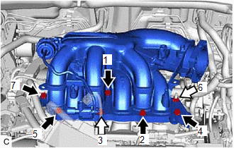 (d) Tighten the 5 bolts and 2 nuts in the order shown in the illustration.