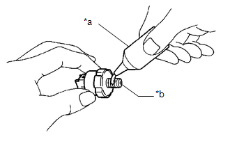 | (a) Apply adhesive to 2 or 3 threads of the engine oil pressure switch assembly. Adhesive: Toyota Genuine Adhesive 1344, Three Bond 1344 or equivalent NOTICE: -