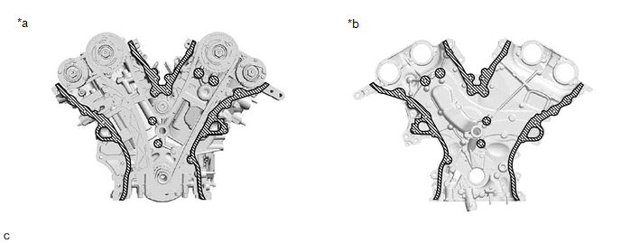 | *a | Dashed Line Area (Seal packing: Toyota Genuine Seal Packing Black, Three Bond 1207B or equivalent) | *b | Continuous Line Area (Seal packing: Toyota Genuine Seal Packing Black, Three Bond 1207B or equivalent) |