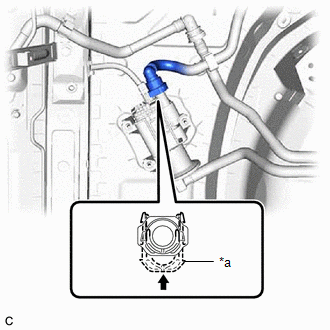 (c) Push the air line tube onto the (leak detection pump sub-assembly) and push in the retainer to engage the lock claws.