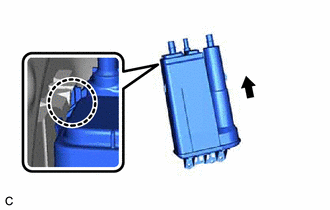 | (b) Engage the claw to install the canister (charcoal canister assembly) to the vehicle body as shown in the illustration. |
