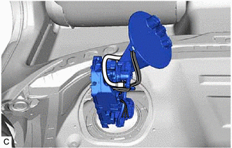 | (c) Insert the fuel suction tube with pump and gauge assembly to the fuel tank assembly as shown in the illustration. |
