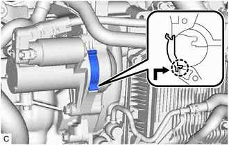 | (a) Align the protrusion with the cylinder block sub-assembly and engage the claw as shown in the illustration to install the flywheel housing side cover. NOTICE: -