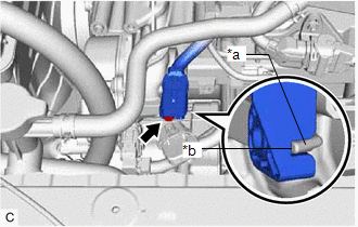 | (d) Align the protrusion of the engine water pump assembly (water inlet housing) with the cutout in the sensor wire clamp. |