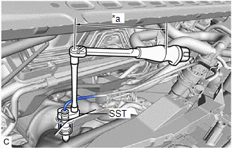 | (a) Using SST, install the air fuel ratio sensor to the exhaust manifold (TWC: Front Catalyst). SST: 09224-00012 Torque: Specified tightening torque : 44 N·m {449 kgf·cm, 32 ft·lbf} NOTICE: If the air fuel ratio sensor has been struck or dropped, replace it. | | | *a | Torque Wrench Fulcrum Length | | |