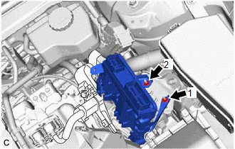 | (a) Install the ECM with the 2 nuts in the order shown in the illustration. Torque: 8.0 N·m {82 kgf·cm, 71 in·lbf} NOTICE: If the ECM has been struck or dropped, replace it. | |