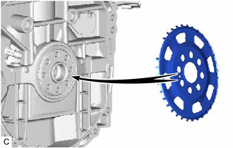 | (1) Install the No. 1 crankshaft position sensor plate. HINT: Align the pin hole of the No. 1 crankshaft position sensor plate with the pin of the crankshaft. |