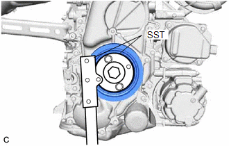 | (a) Using SST, hold the crankshaft pulley assembly. SST: 09213-54015 SST: 09330-00021 |