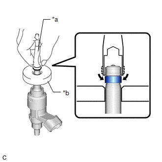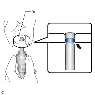 | (a) Install a new injector vibration insulator and a new C-ring to each direct fuel injector assembly. NOTICE: