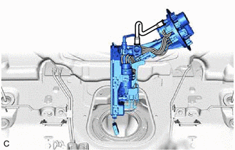 (c) Connect the 2 fuel suction tube with pump and gauge assembly connectors and fuel tank pressure sensor (vapor pressure sensor) connector.