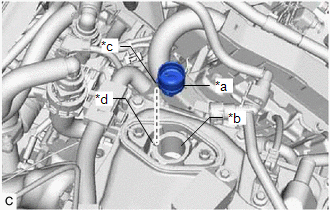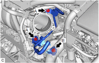 | (a) Temporarily install the No. 2 water by-pass pipe to the cylinder block sub-assembly with the bolt (B). |