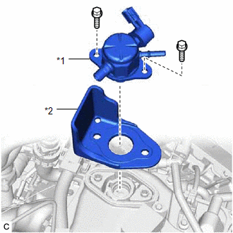 | (h) Set the fuel pump flange and fuel pump assembly on the cylinder head cover sub-assembly as shown in the illustration. |