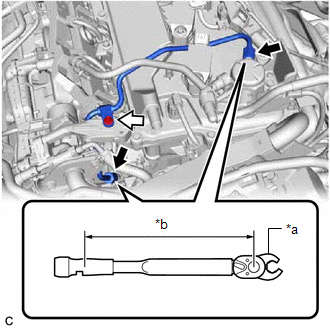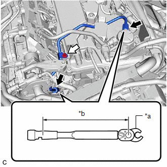 (1) Using a 17 mm union nut wrench, tighten the union nut on the fuel delivery pipe side of the No. 1 fuel pipe sub-assembly.