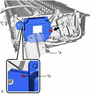 | (a) Install the battery voltage sensor to the HV battery with the bolt. Torque: 7.5 N·m {76 kgf·cm, 66 in·lbf} NOTICE: