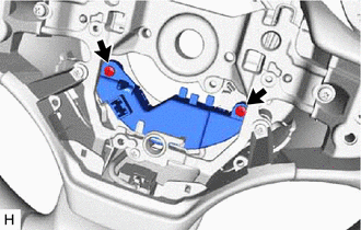 | (b) Install the heated steering wheel controller (steering vibration ECU) and steering wheel pad bracket with the 2 screws. NOTICE: -