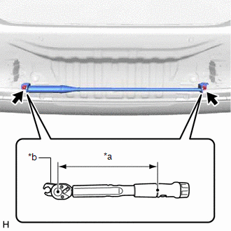 | (a) Using a union nut wrench, install the suspension tower damper to the vehicle with the 2 nuts. Torque: Specified tightening torque : 35 N·m {357 kgf·cm, 26 ft·lbf} NOTICE: Do not extend or compress the damper. | | | *a | Torque Wrench Fulcrum Length | | *b | Union Nut Wrench | | |