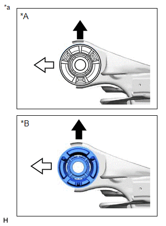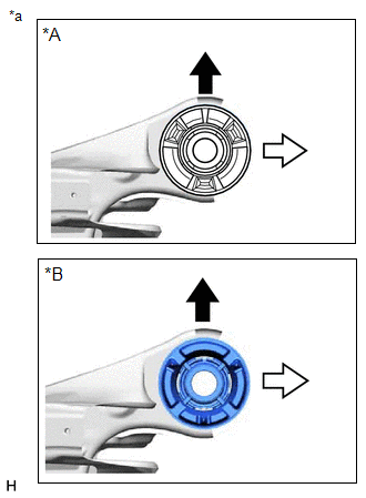(a) Confirm the installation direction and temporarily install a new rear suspension member front body mounting cushion.