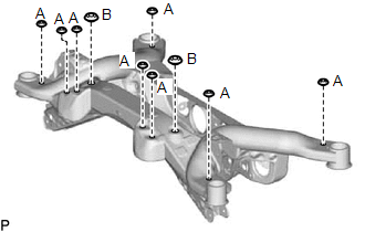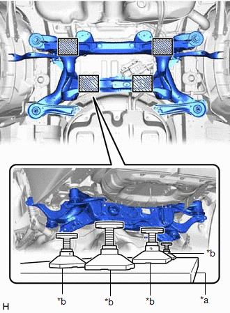 (b) Using an engine lifter and 4 attachments or equivalent tools, support the rear suspension member sub-assembly as shown in the illustration.