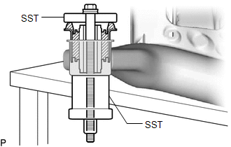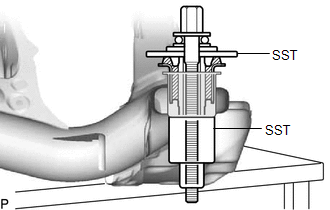 (b) Install SST using the same procedure as for the rear suspension member front body mounting cushion (for LH Side).