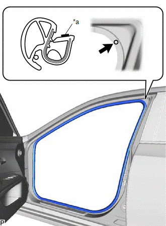 (a) Align the alignment mark on the front door opening trim weatherstrip with the flange on the vehicle body indicated by the arrow in the illustration, and install the front door opening trim weatherstrip.