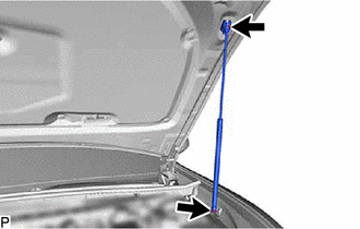 | (a) Engage the 2 ball joints to install the hood support assembly. NOTICE: Install the hood support assembly while supporting the hood by hand. | |