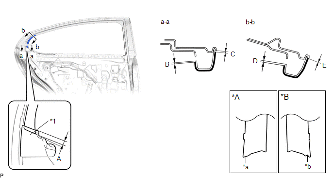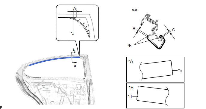 | *a | Rib of Rear Door Frame Garnish | *b | Edge of Curved Surface |