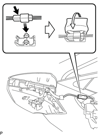 (4) Paste a new outer mirror tape around the camera connector clamp.
