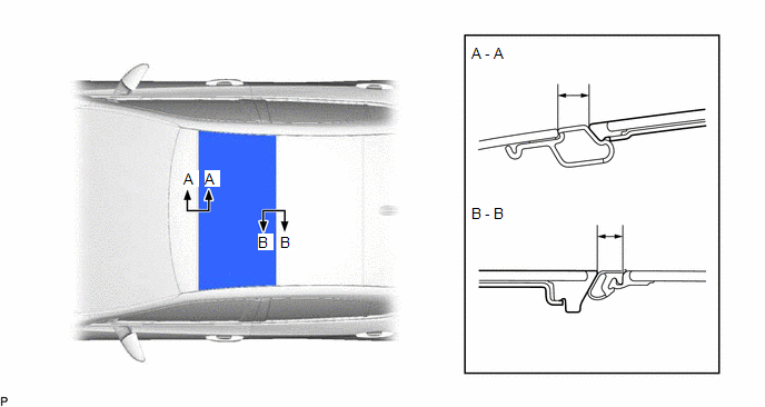 (1) Check the gap between the sliding roof glass sub-assembly and sliding roof housing assembly.