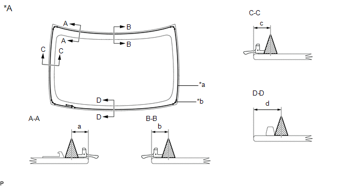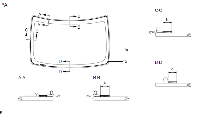| *a | Ceramic Notch | *b | Back Window Glass Adhesive Dam Positioning Center |