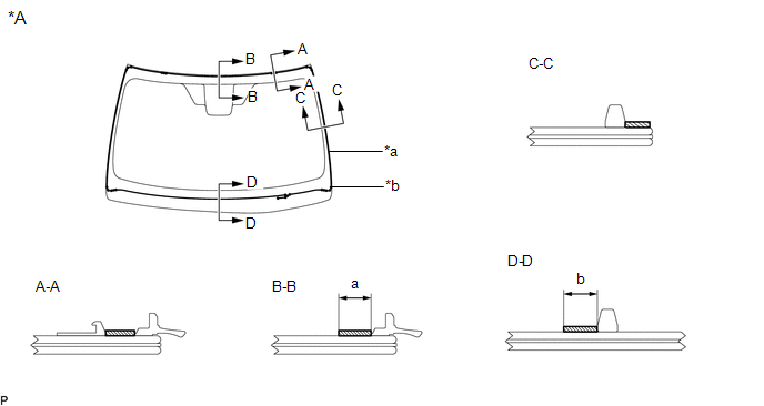 | *a | Ceramic Notch | *b | Window Glass Adhesive Dam Positioning Center |