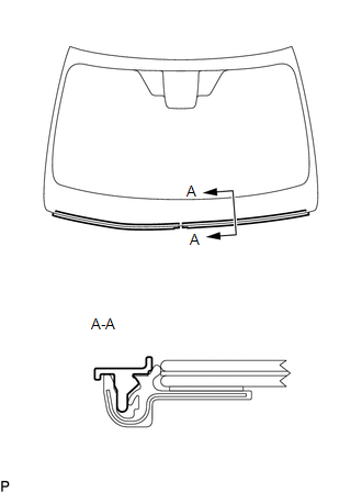 | (a) Install 2 new No. 1 windshield glass stoppers to the vehicle body as shown in the illustration. HINT: Only 2-piece type windshield glass stoppers are provided as supply parts. Use 2-piece type stoppers as replacements even if 1-piece type stoppers were originally installed. |