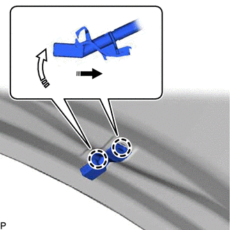 (b) Engage the 2 claws as indicated by the arrows, in the order shown in the illustration to install the washer nozzle sub-assembly.