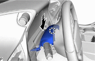 (e) Turn the steering wheel assembly to the right and install the lower steering column cover sub-assembly with the screw.