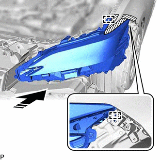 (b) Engage the 2 guides to temporarily install the headlight assembly as shown in the illustration.