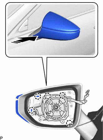 (3) Install the outer mirror cover assembly with the 4 screws.