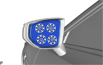 | (9) Engage the 4 claws to install the outer mirror. NOTICE: Do not push the outer mirror with excessive force. Doing so may break the mirror surface. | |
