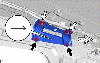 Make sure to install the rear sliding roof housing mounting bracket LH with its arrow facing the upper side of the vehicle.