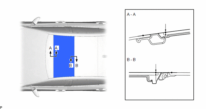 (1) Check the gap between the sliding roof glass sub-assembly and sliding roof housing assembly.