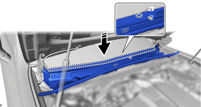 Make sure that the cowl top ventilator louver sub-assembly does not contact the vehicle body, otherwise it may be damaged.