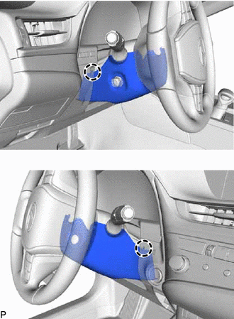 (e) Turn the steering wheel assembly to the right and install the lower steering column cover sub-assembly with the screw.