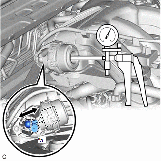 | (c) Using the vacuum pump, apply a vacuum to the intake air control valve (for ACIS). Check that the actuator rod operates when vacuum is applied. If the actuator rod does not operate when vacuum is applied, replace the intake air surge tank assembly. |