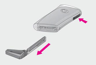 After using the mechanical key, store it in the electronic key. Carry the mechanical key together with the electronic key. If the electronic key battery is depleted or the entry function does not operate properly, you will need the mechanical key.